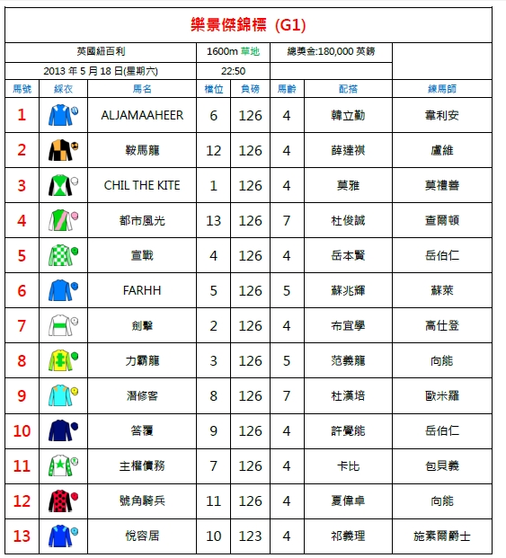 標題: 英國一級賽--樂景傑錦標 英國紐百利 1600m 草地