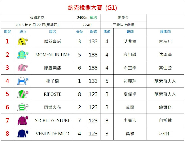 標題: 英國一級賽--約克橡樹大賽 英國約克 2400m 草地 三歲以上雌馬