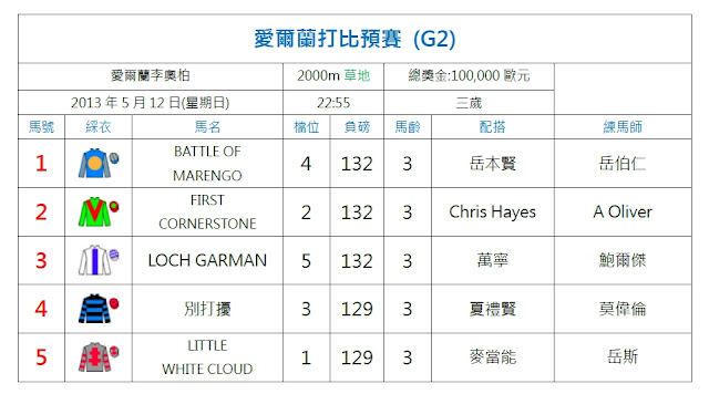 標題: 愛爾蘭二級賽--愛爾蘭打比預賽 愛爾蘭李奧柏 2000m 草地 三歲
