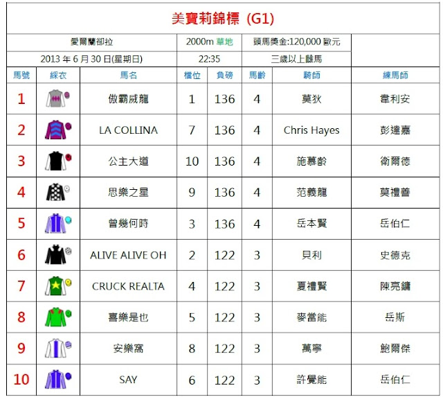 標題: 愛爾蘭一級賽--美寶莉錦標 愛爾蘭卻拉 2000m 草地 三歲以上雌馬